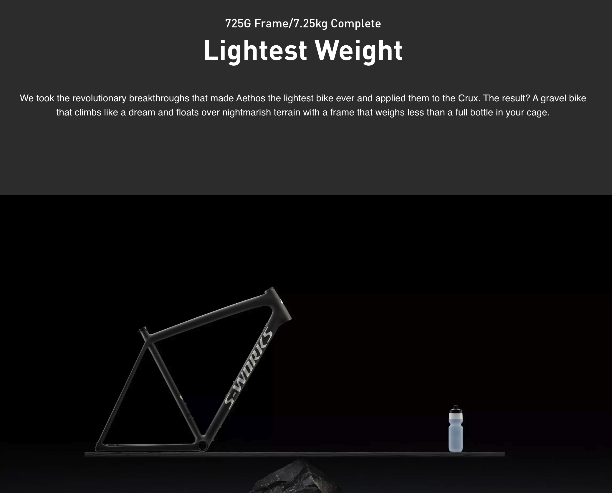 •lightest gravel bike on earth – 725g SW frame (1kg lighter than diverge)