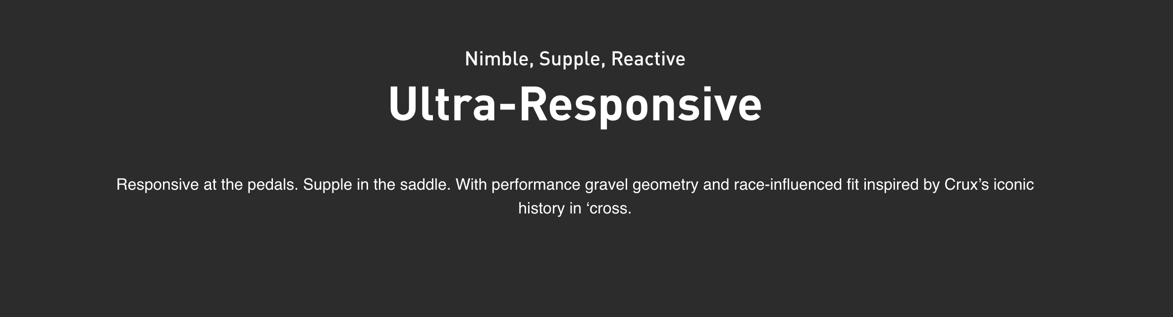 New CRUX is more accessible and inclusionary. You can take it from the cross course to a gravel event or spend the weekend exploring the outdoors.